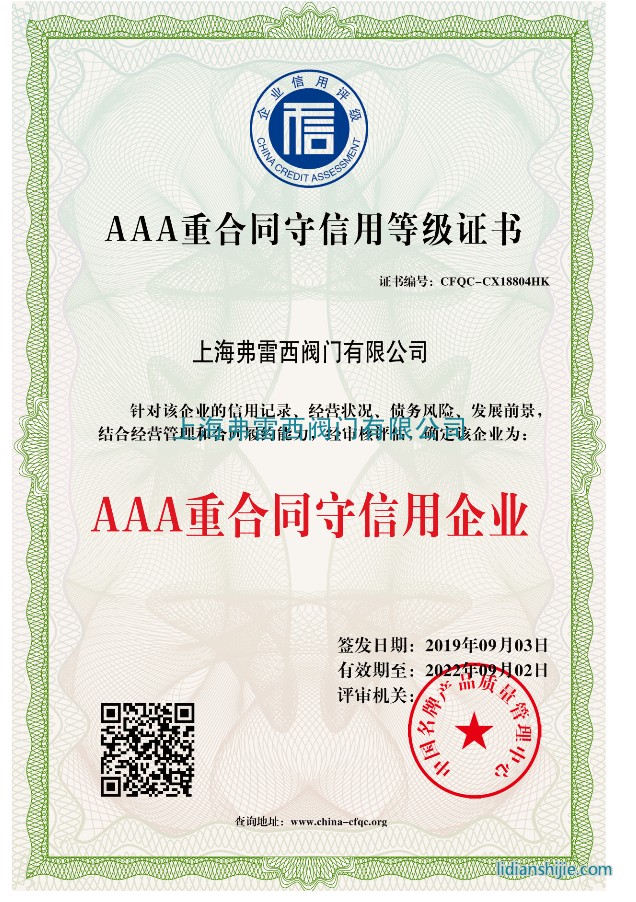 AAA重合同守信用等級證書