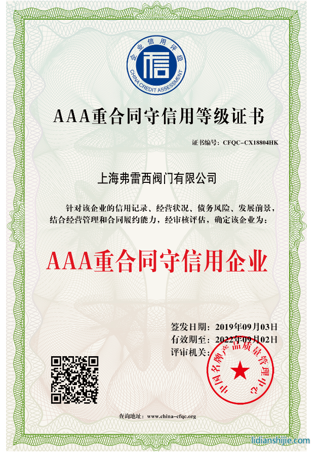 AAA重合同守信用等級證書