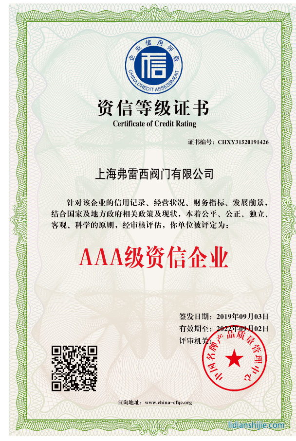 證書的A是指企業的信用程度良好,在正常情況下償還債務沒有問題。