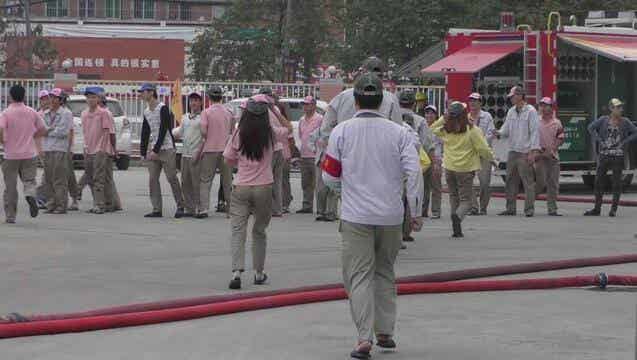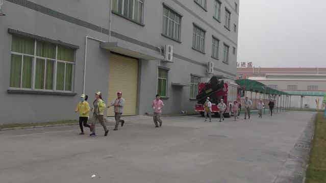 現場逃生人員迅速跑到安全緊急疏散集合點