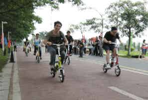 同日,在廣州大學(xué)城自行車綠道舉辦的猛獅一秒鐘折疊鋰電自行車騎行體驗(yàn)活動(dòng)現(xiàn)場,大學(xué)生們積極參與其中,在時(shí)尚環(huán)保、綠色騎行的樂趣中體驗(yàn)“新人類、新生活、新能源”的魅力。