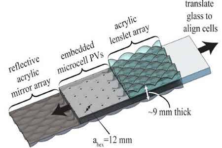 為了讓CPV在普通的屋頂上使用,研究者將小型化的砷化鎵光伏電池、3D打印的塑料透鏡陣列和一個可移動的聚焦機構結合在一起,以減少CPV系統的大小、重量和成本,使之可以放在建筑物屋頂的朝南一側。