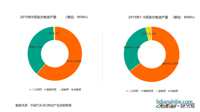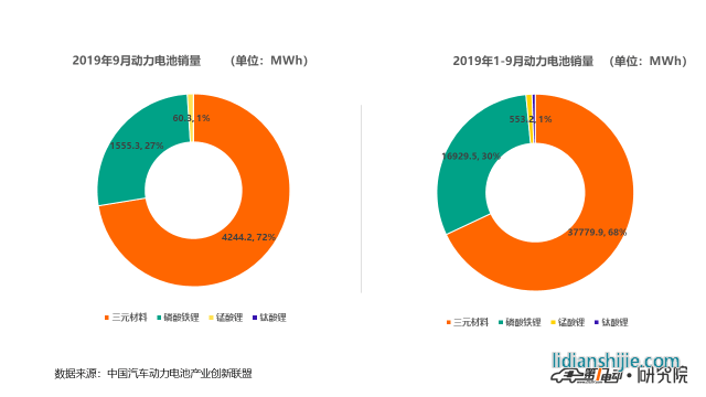 2019年1-9月,我國動力電池累計銷量達55.6GWh,其中三元電池累計銷售37.8GWh,占總銷量68%;磷酸鐵鋰電池累計銷售16.9GWh,占總銷量比30.5%。磷酸鐵鋰電池市場較去年同期仍存在一定差距。