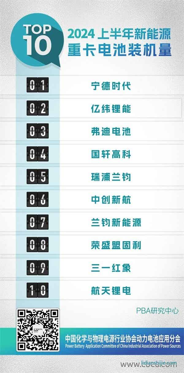 動力電池應(yīng)用分會數(shù)據(jù)顯示,受益新能源重卡銷售的火熱表現(xiàn),今年上半年我國新能源重卡電池裝機(jī)量也水漲船高,達(dá)到7668.8MWh,同比增長87.0%。從登記裝機(jī)數(shù)據(jù)來看,上半年國內(nèi)新能源重卡動力電池裝機(jī)量TOP10分別為寧德時代、億緯鋰能、弗迪電池、國軒高科、瑞浦蘭鈞、中創(chuàng)新航、蘭鈞新能源、榮盛盟固利、三一紅象和航天鋰電。
