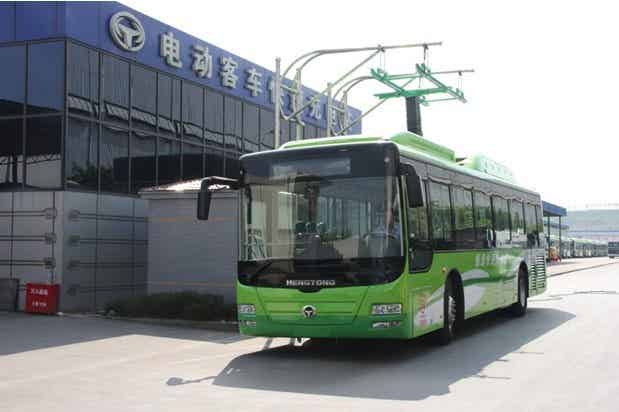 圖1.裝配LpTO電池組,采用集電弓快速充電的插電式混合動(dòng)力公交客車