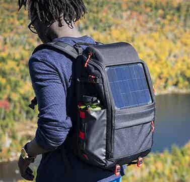 兩款產(chǎn)品中Offgrid雙肩包的體積較小,其配備了6W太陽能電池板和4000mAh電池;而Array雙肩包則采用了10W太陽能電池板和19,800mAh電池。背包內(nèi)的電池能夠通過太陽能和墻插兩種方式進行充電,不過墻插仍然是更為快捷的充電方式,作為對比,Array內(nèi)的電池通過太陽能充滿電需要12小時,而通過墻插充電則只需4小時便可充滿。