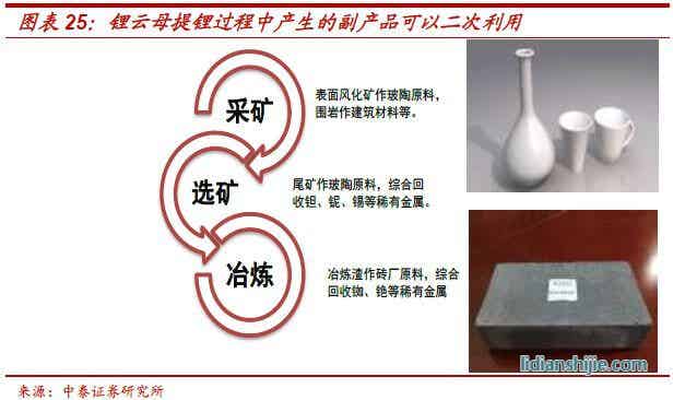 伴生品帶來降本增效空間:公司原礦氧化鋰含量0.6%,通過進(jìn)一步采選之后形成3%品味的精礦。按照18萬噸精礦產(chǎn)1萬噸碳酸鋰計(jì)算,公司目前共計(jì)170萬噸(永興新能源120萬噸+永誠鋰業(yè)50萬噸)選礦能力不僅可以滿足現(xiàn)階段生產(chǎn)所需,同時(shí)也為將來碳酸鋰進(jìn)一步擴(kuò)產(chǎn)奠定了基礎(chǔ)。此外,從原礦-精礦(鋰云母)-碳酸鋰的生產(chǎn)過程中,伴隨著大量有價(jià)值的尾礦廢渣,如長石粉和水晶粉等,加強(qiáng)這些相關(guān)資源的綜合利用不僅有利于改善當(dāng)?shù)丨h(huán)境,而且對公司降本增效提升明顯。以永興新能源120萬噸原礦采選能力為例,6噸原礦產(chǎn)生1噸精礦,剩余5噸為長石粉,按照目前長石粉售價(jià)70元/噸,18噸精礦產(chǎn)1噸碳酸鋰計(jì)算,僅長石粉銷售導(dǎo)致的單噸碳酸鋰成本降幅可達(dá)6300元;