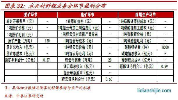 碳酸鋰業(yè)績測算:對于公司碳酸鋰業(yè)務(wù)的測算,由于公司已經(jīng)實(shí)現(xiàn)全產(chǎn)業(yè)鏈布局,采礦-選礦-終端產(chǎn)品三個(gè)環(huán)節(jié)都會產(chǎn)生相應(yīng)利潤,目前而言,伴隨著碳酸鋰價(jià)格快速下跌,越靠近終端其盈利壓力越大,反而是上游的礦石采掘和篩選環(huán)節(jié)利潤更為豐厚,因此為了詳細(xì)拆分公司鋰產(chǎn)品盈利分布,我們將各環(huán)節(jié)分開測算。1)采礦:公司目前擁有花橋、花鋰礦業(yè)兩大礦業(yè)公司,按照原礦年產(chǎn)量120萬噸測算,貢獻(xiàn)毛利0.37億元,值得注意的公司分別持有花橋、花鋰公司70%、45.85%股權(quán),對應(yīng)上市公司業(yè)績應(yīng)當(dāng)乘以相應(yīng)比例;2)選礦:永興新能源與永誠鋰業(yè)分別擁有120萬噸及50萬噸選礦能力,以6:1的選礦能力采選出精礦(鋰云母),按照20萬噸鋰云母產(chǎn)量測算,其貢獻(xiàn)毛利0.6億元;3)碳酸鋰:按照碳酸鋰價(jià)格54000元,全年銷量8000噸測算,貢獻(xiàn)毛利0.39億元,綜上統(tǒng)計(jì),公司鋰產(chǎn)品有望貢獻(xiàn)毛利1.25億元;