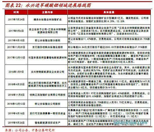 跨領(lǐng)域進(jìn)入碳酸鋰行業(yè):永興雖然長期深耕不銹鋼棒線材領(lǐng)域,但上市以來,伴隨著融資渠道不斷豐富,公司在做強(qiáng)原有主業(yè)的同時(shí),積極布局第二產(chǎn)業(yè)。經(jīng)歷長期論證與探索之后,公司于2017年7月實(shí)現(xiàn)對合眾鋰業(yè)、旭鋰礦業(yè)的股權(quán)收購,正式宣布進(jìn)軍新能源上游材料領(lǐng)域-鋰云母原礦開采及碳酸鋰生產(chǎn)。雖然公司在之后轉(zhuǎn)讓了合縱鋰業(yè)的相關(guān)股權(quán),但卻并未動搖其持續(xù)加碼碳酸鋰行業(yè)的決心。2018年4月永興1萬噸碳酸鋰項(xiàng)目在江西宜春市正式動工,同時(shí)配套年產(chǎn)120萬噸采礦項(xiàng)目。2019年12月公開調(diào)研信息顯示,永興新能源碳酸鋰產(chǎn)線目前正處于調(diào)試階段,其中1號線設(shè)計(jì)產(chǎn)能5000噸已經(jīng)進(jìn)入連續(xù)生產(chǎn)狀態(tài),2號線則處于有條不紊的試生產(chǎn)之中,公司在碳酸鋰項(xiàng)目上的快速推進(jìn)為其新能源戰(zhàn)略的落地打下了堅(jiān)實(shí)基礎(chǔ);