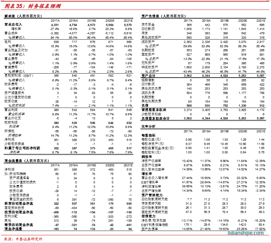 營收和利潤:預(yù)計(jì)公司2019-2021年實(shí)現(xiàn)營業(yè)收入分別為49.73億元、59.84億元以及65.70億元,同比分別增長3.73%、20.32%、9.80%;對應(yīng)實(shí)現(xiàn)歸母凈利潤3.73億元、4.65億元以及5.17億元,同比變化-3.58%、24.75%、11.20%。