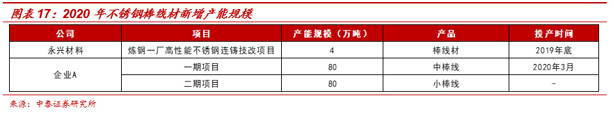 關(guān)注不銹鋼棒線材大型產(chǎn)能投放進(jìn)程:當(dāng)然,雖然不銹鋼棒線材頭部企業(yè)占據(jù)了近乎壟斷的地位,但這并不意味著行業(yè)供給就是完全恒定,過去幾年不銹鋼持續(xù)高盈利水平對產(chǎn)能投放沖動的刺激依然存在。我們通過整理近幾年行業(yè)產(chǎn)能建設(shè)項(xiàng)目,發(fā)現(xiàn)中高端領(lǐng)域如寶鋼特鋼、永興材料等企業(yè)產(chǎn)能投放較少,而主要面向中低端市場領(lǐng)域的棒線材生產(chǎn)企業(yè)自2016年以來不僅原有規(guī)模出現(xiàn)快速擴(kuò)張,而且新進(jìn)產(chǎn)能體量也不容忽視。在這輪行業(yè)盈利上行期,不銹鋼企A投資16.8億元用于160萬噸的不銹鋼產(chǎn)能項(xiàng)目建設(shè),其中于一期項(xiàng)目共計(jì)80萬噸中棒線,于2017年10月動工,計(jì)劃2020年3月投產(chǎn)。但需要注意的是,該公司將投產(chǎn)的160萬噸僅為軋制產(chǎn)能,并未配套相應(yīng)的煉鋼設(shè)備,而是將匹配公司在海外的300萬噸煉鋼項(xiàng)目(100萬噸于2019年底投產(chǎn)),棒線材產(chǎn)線將外購自海外出口的不銹鋼方坯作為原料。但考慮到海外項(xiàng)目生產(chǎn)與銷售不確定性較大,尤其是近期海關(guān)總署決定對來自于印尼、日韓、歐盟等地的不銹鋼鋼坯征收反傾銷稅,一旦無法大量進(jìn)口坯料其對國內(nèi)新增供給影響就較為有限(如果采用國內(nèi)其它不銹鋼廠坯料也只是存量競爭,并不構(gòu)成新增),因此未來此大型新增產(chǎn)能項(xiàng)目投放可能低于預(yù)期;