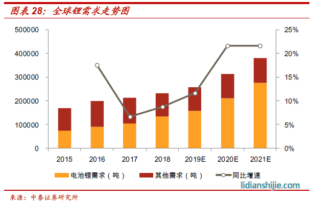 鋰電池需求快速擴(kuò)張:鋰電池廣泛應(yīng)用于新能源汽車及3C數(shù)碼領(lǐng)域,已經(jīng)成為鋰下游最重要的需求領(lǐng)域,用量占比接近60%。在歐洲新能源汽車市場的快速放量推動下,我們測算 2020-2022年動力電池鋰需求有望達(dá)到12.1萬噸、16.8萬噸、23.9萬噸;而以3C數(shù)碼為代表的非動力電池受益于“5G”換機(jī)潮,未來三年其鋰需求分別達(dá)到7.6萬噸、9.1萬噸、9.7萬噸,而其他諸如玻璃陶瓷、潤滑脂等領(lǐng)域需求維持相對平穩(wěn)。綜合下來,預(yù)計(jì)2020年我國鋰礦需求達(dá)到33.1萬噸,同比增速22%,需求增速較2019年快速提升8個(gè)百分點(diǎn);