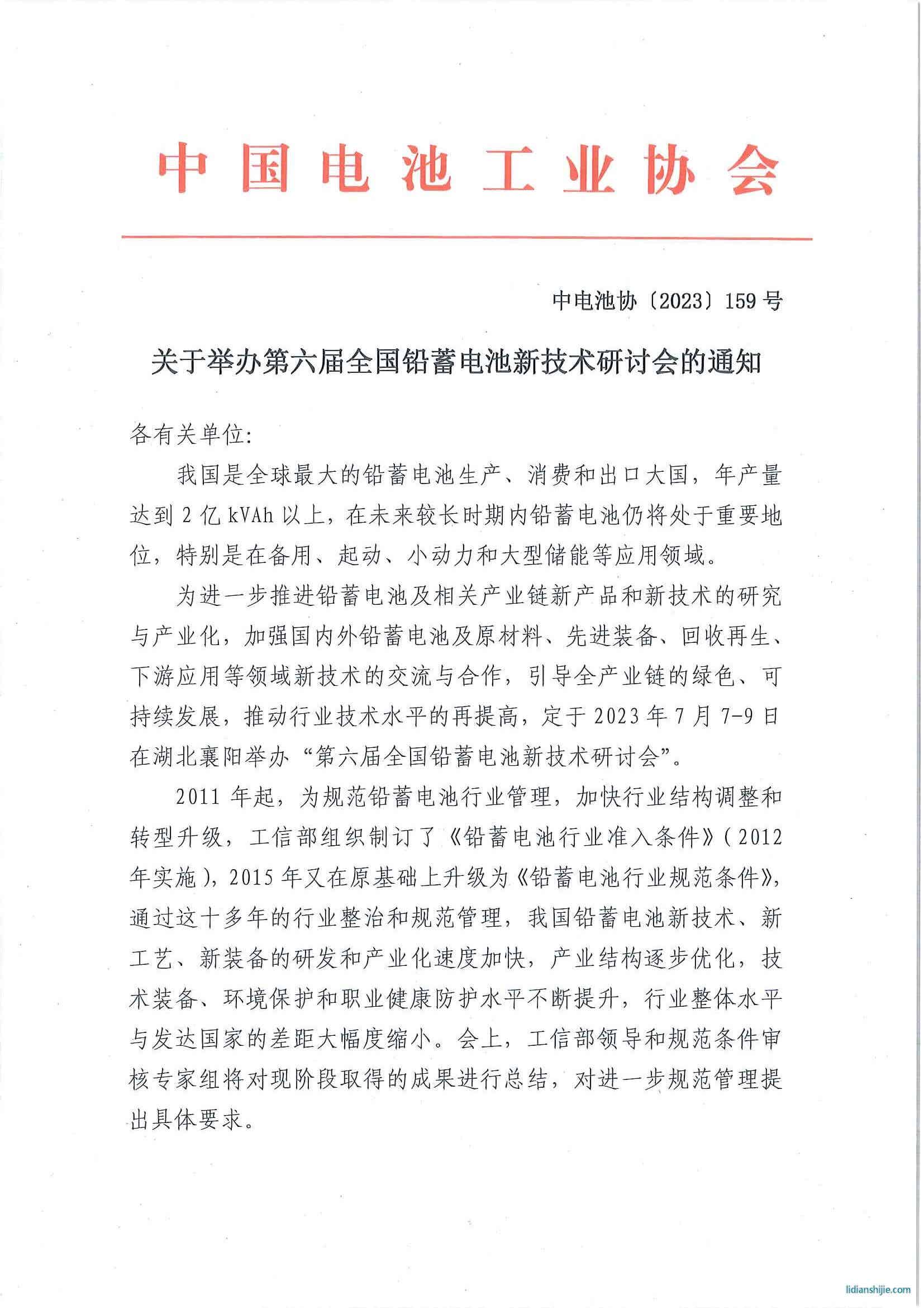 關于舉辦第六屆全國鉛蓄電池新技術研討會的通知 2023-06-07 534890 核心提示:文件下載:第六屆全國鉛蓄電池新技術研討會會議通知.pdf作者:中國電池工業協會 文件下載: 第六屆全國鉛蓄電池新技術研討會會議通知.pdf 作者:中國電池工業協會 點贊 0舉報收藏 0打賞 0評論 0分享 77 更多>同類鋰電資訊 • 奔馳正加速推進電動車固態電池上車進程 • 磷酸鐵鋰電池漸成市場主力 • 迷之碳酸鋰庫存 • 鋰電產業鏈周記 | 寧德時代聯手五大車企發布10 • 天能發布全新駐車鋰電池產品 • 中力再生鋰電叉車成汽車零部件企業降本增效“新 • 德意軍火巨頭向菲律賓出售先進鋰電潛艇 • 廣東首個“飛輪+鋰電”混合新型儲能電站落戶廣 • 美國關稅對于鋰電產業鏈的影響 • 富祥藥業: 鋰電添加劑與微生物蛋白業務前景對比