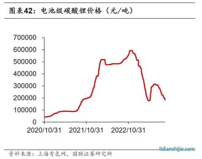 2022年碳酸鋰的價格還飆升至50萬元/噸,今年的4月份跌至20萬元/噸以下,鋰離子電池產(chǎn)業(yè)鏈價格大幅回落。