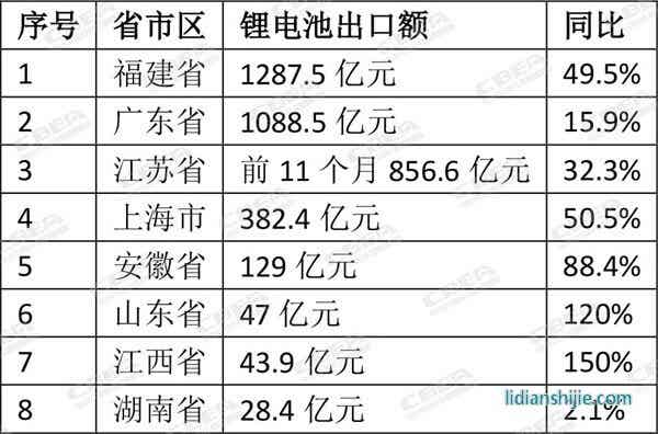 2023年中國部分省市鋰電池出口情況