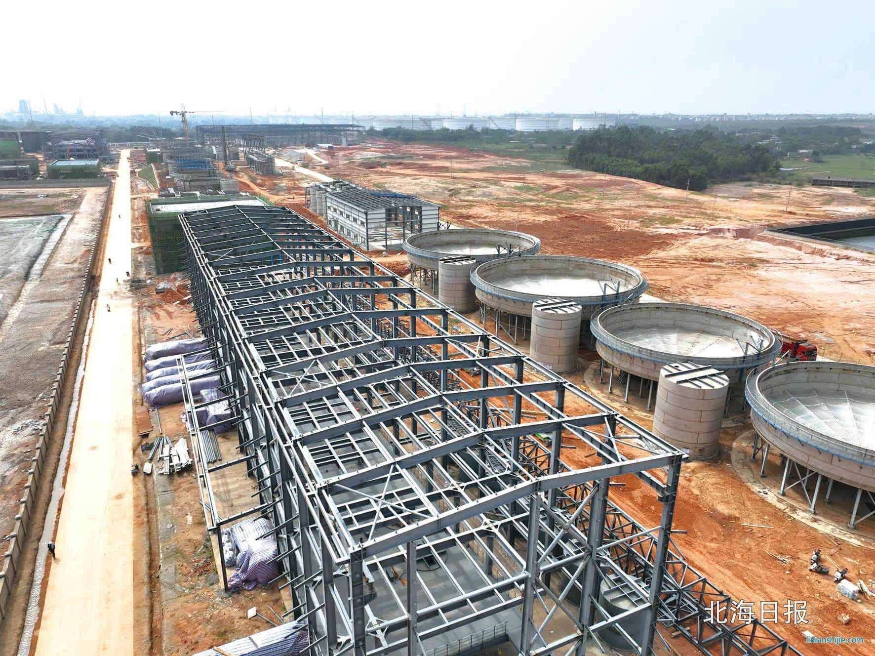 目前,該項目各項生產前準備工作正緊鑼密鼓推進中,鋼結構廠房、反應釜、儲罐等已安裝就緒。從3月21日起,北海順應新能源材料有限公司分批次將22萬噸鎳礦從北海碼頭鐵山港作業區散貨堆場提取轉運進廠堆存。大型核心進口先進設備安裝等工作也在加緊推進中。