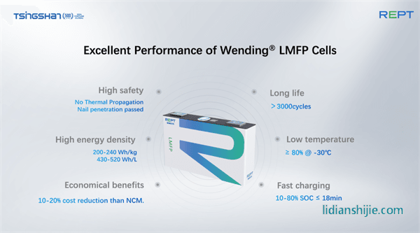 相比LFP與NCM電池,瑞浦蘭鈞推出的LMFP電池綜合了LFP電池和NCM電池的優(yōu)勢(shì)性能,疊加瑞浦蘭鈞獨(dú)創(chuàng)的Wending®技術(shù)后,進(jìn)一步提升能量密度、循環(huán)壽命、低溫性能、快充性能、安全性能等。