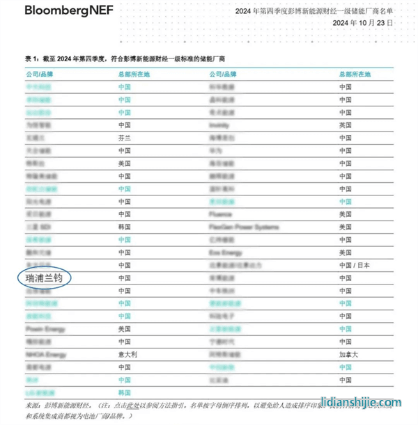 彭博新能源財經(BloombergNEF,簡稱“BNEF”) 正式發布了2024年第四季度全球Tier 1一級儲能廠商榜單,瑞浦蘭鈞憑借領先的技術實力、可靠的項目交付質量以及日益增強的全球品牌影響力再次登榜。今年以來,瑞浦蘭鈞已連續四季度獲得這一榮譽,進一步鞏固了其在儲能行業的領軍者地位。