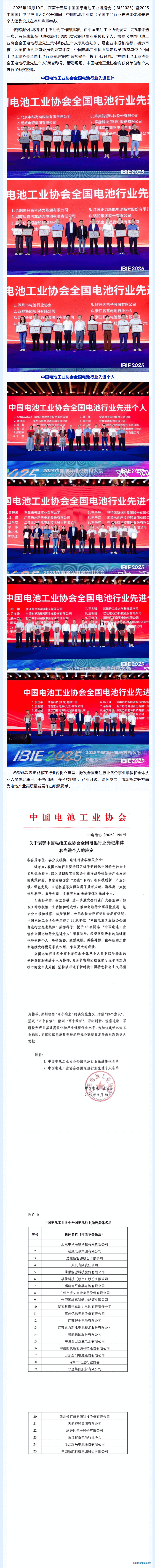 中國電池工業(yè)協(xié)會(huì)全國電池行業(yè)先進(jìn)集體和先進(jìn)個(gè)人頒獎(jiǎng)儀式在深隆重舉辦