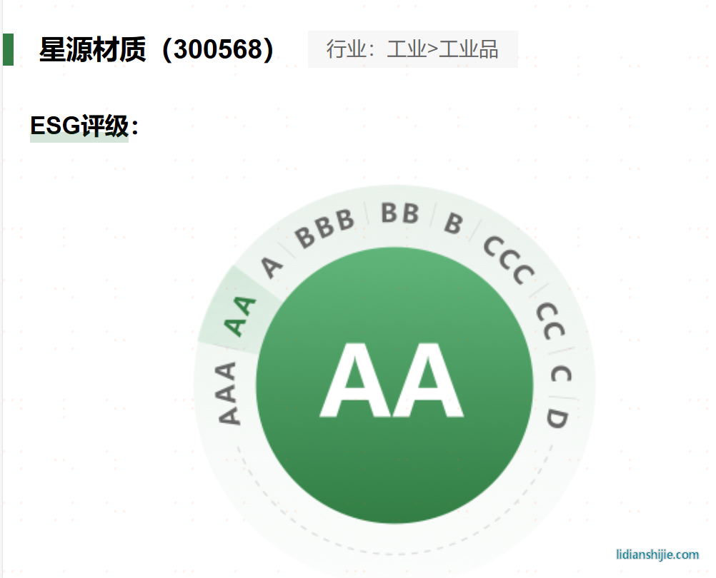 近日,深交所國證ESG評級結果顯示,星源材質評級提升至AA級。