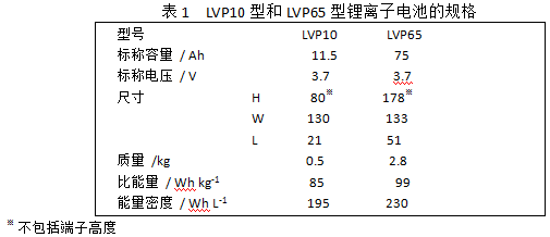 圖1 LVP10型和LVP65型鋰離子電池的外觀