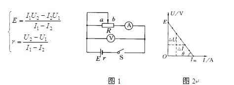 (至少測出6組),并且變化范圍晝大些,然后用描點法在U-I圖象中描點作圖,由圖象縱截距找出E,由圖象斜率 找出內電阻,如實驗圖2所示.