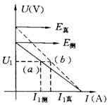 2、系統誤差:系統誤差來源于未計電壓表分流,近似地將電流表的示數看作干路電流.實際上電流表的示數比干路電流略小.如果由實驗得到的數據作出實驗圖7中實線(a)所示的圖象,那么考慮到電壓表的分流后,得到的U-I圖象應是實驗圖7中的虛線(b),由此可見,按實驗圖10-4所示的實驗電路測出的電源電動勢
